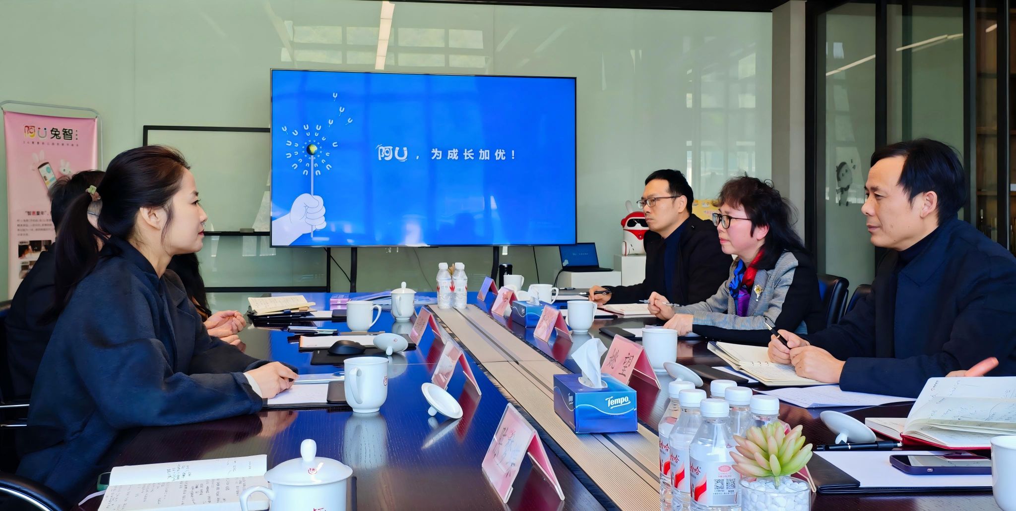 调研期间,在阿优文化科技公司团队的陪同下,李文冰一行先后参观了企业IP展示区和成果展厅,详细了解企业发展历程、核心业务布局、技术研发实力及行业发展前景。通过实地察看,调研人员直观感受了企业在幼儿教育科技、数字文化创意、人工智能应用等领域的创新成果,重点了解了自主IP“阿U”的运营模式、系列动画创作、智慧幼儿园系统平台研发等情况,对企业荣获国家科技进步奖二等奖、拥有100多项知识产权的雄厚实力给予高度评价。